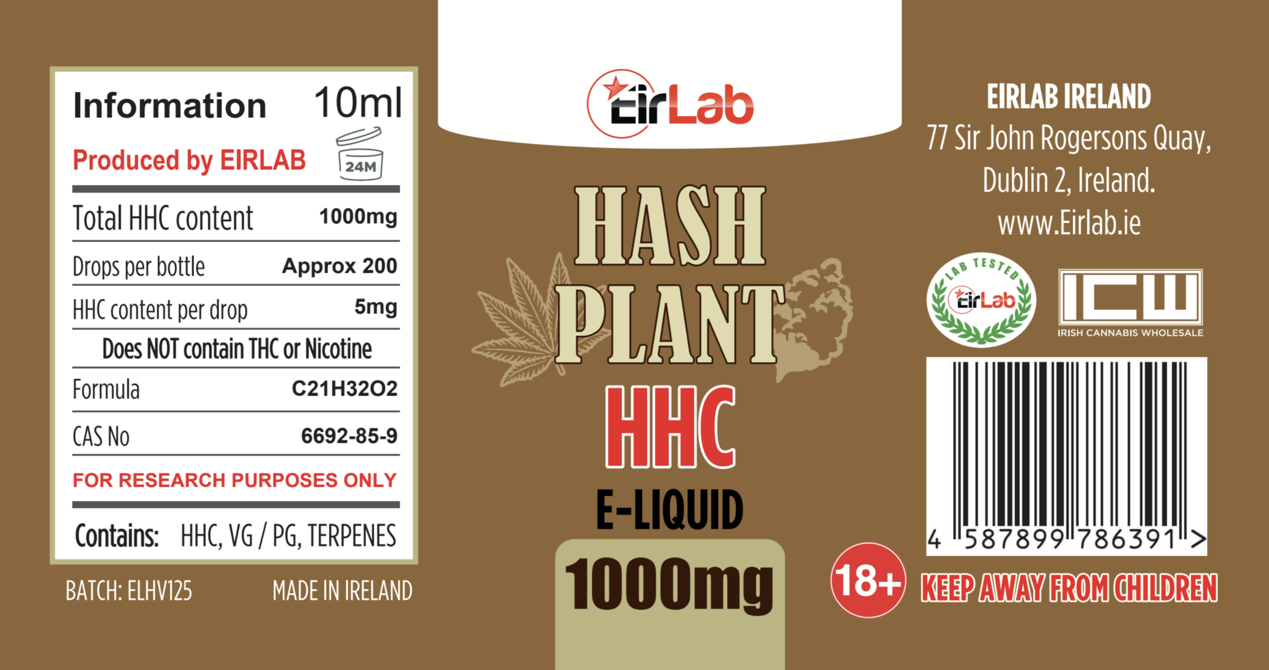 CLICK HERE to view the full analysis of terpenes contains in the EIRLAB Hash Plant HHC E-Liquid