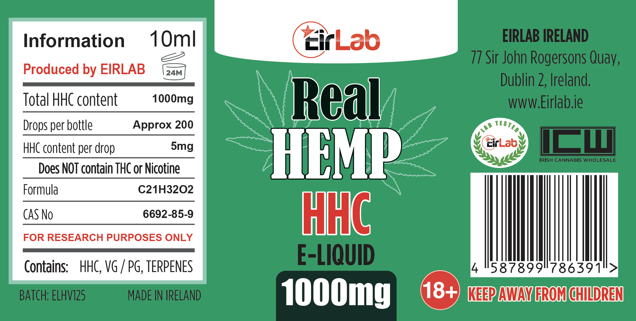 EIRLAB HHC E-Liquid Specifications:
