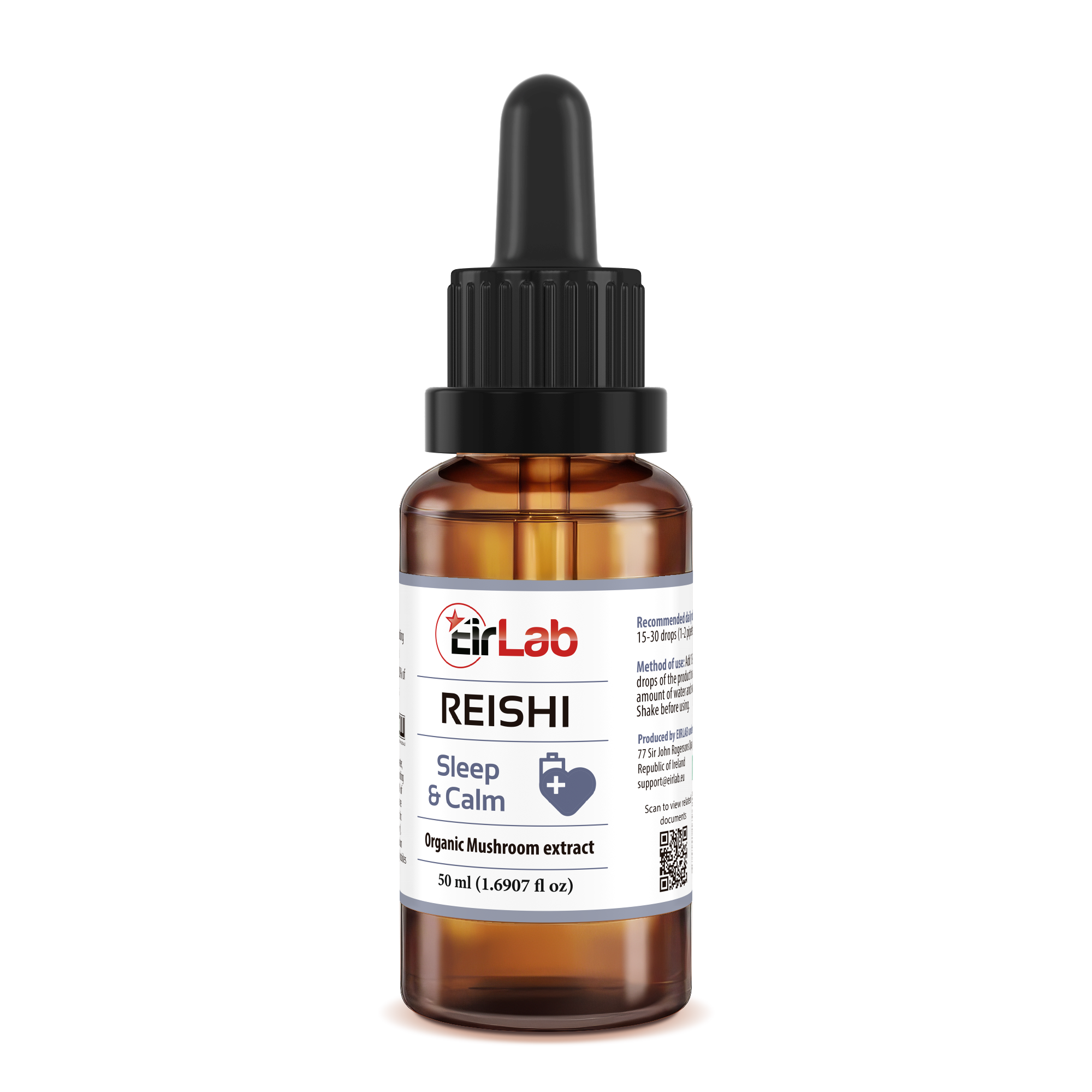 EIRLAB Reishi mushroom tincture is produced in Ireland using only organic ingredients. 100% Natural.